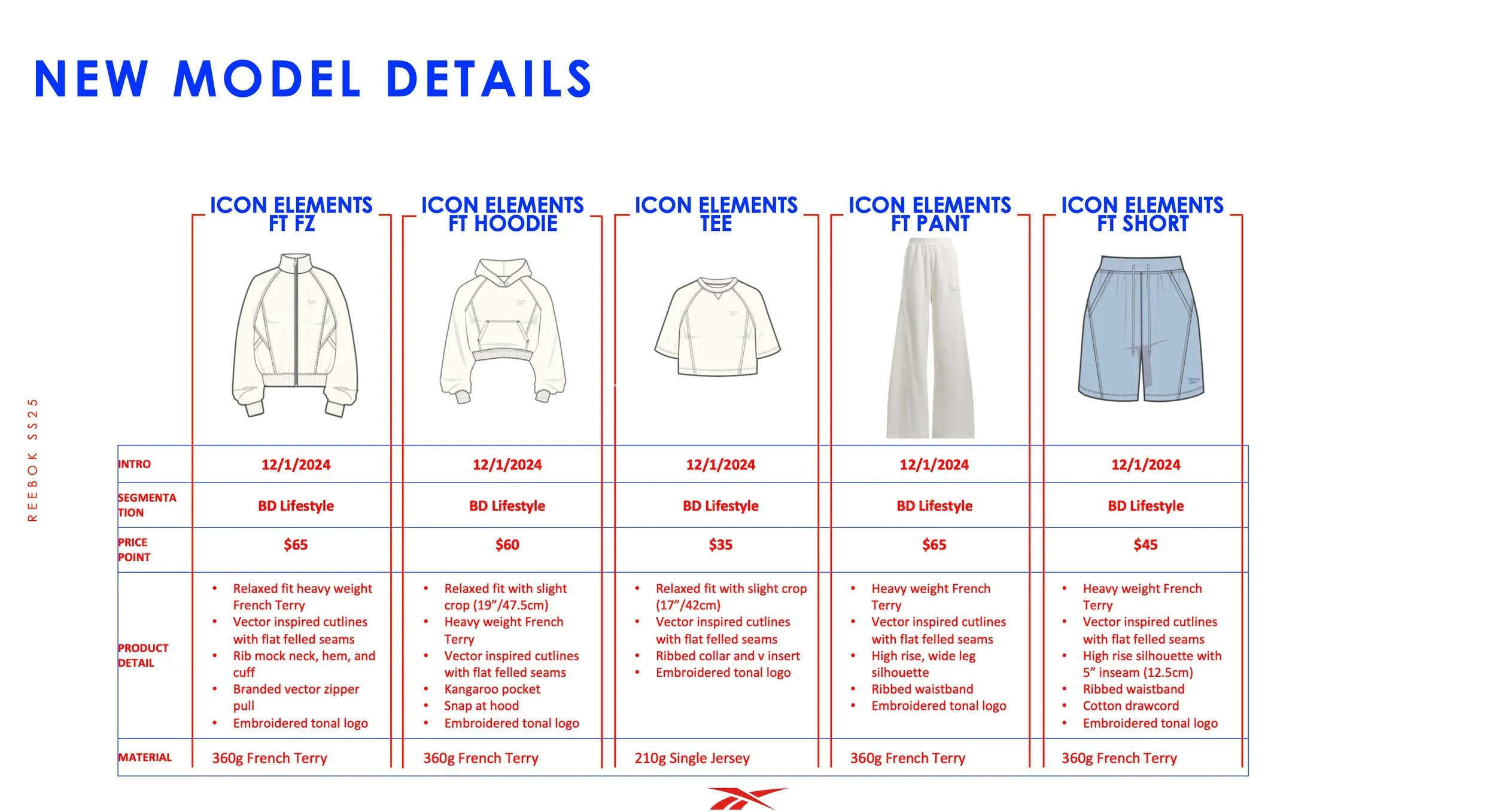 Iconic vector language defines this collection. Evolving from women's archive evolution and men’s back vector cotton/FT/fleece programs, we’re creating a collection that uses the same cutlines across both genders. This collection creates a full ecosystem – from our hero vector tracksuit at the center to our cut + sew cotton/FT/fleece halo. Use the vector to inspire cutlines that act as a visual marker and create interest in timeless silhouettes and fabrics.